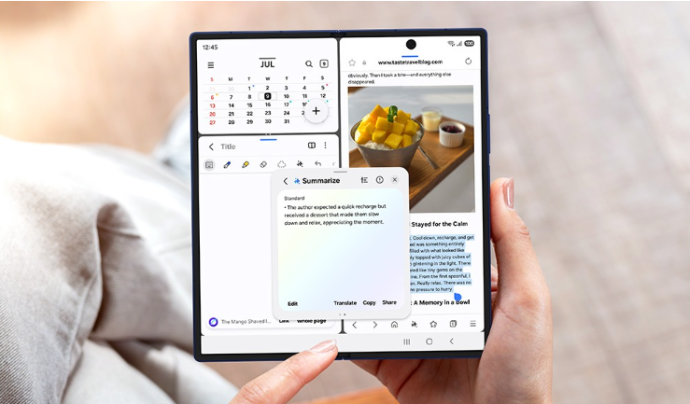 Found something helpful online that you want to keep for future reference? Simply drag and drop website summaries generated by Galaxy AI into the Notes app and save for later. It's a super easy way to store important details, and you can be assured they're always on hand.
